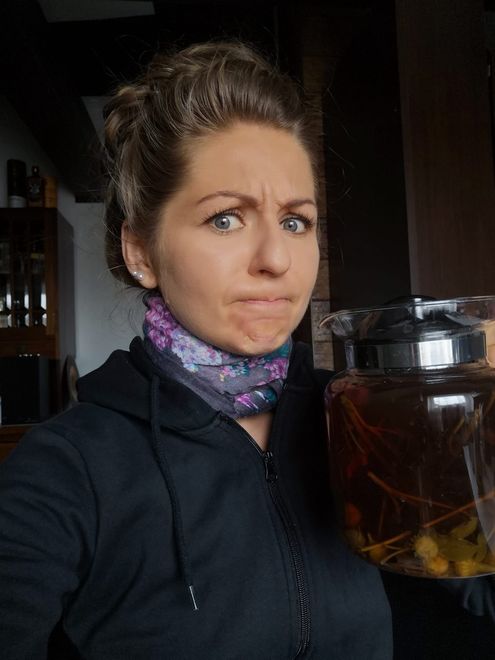 Adélka vzkazuje, že je na horách ZIMA jako PRASE a musí se teď kurýrovat čajem a rumem, teda hlavně rumem, ale prý to do příští soboty vyléčí.